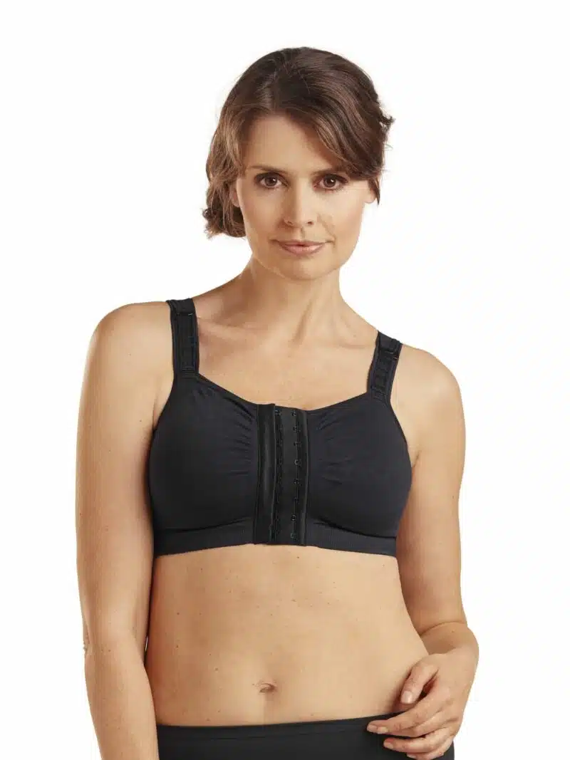 Recomendamos usar un sujetador postoperatorio de alta compresión, con cierres frontales y sin aros, que ayude a reducir la inflamación y estabilizar la zona.
