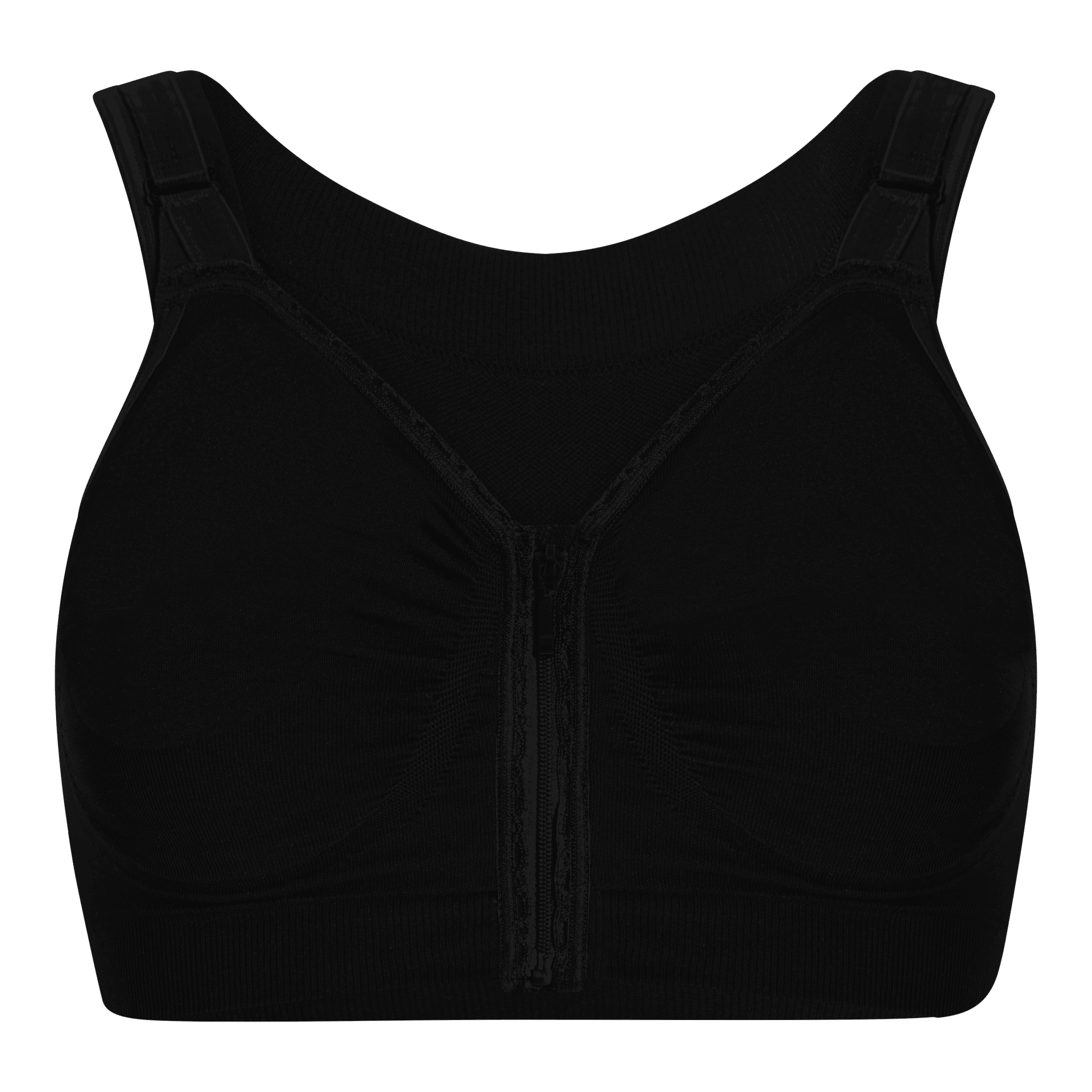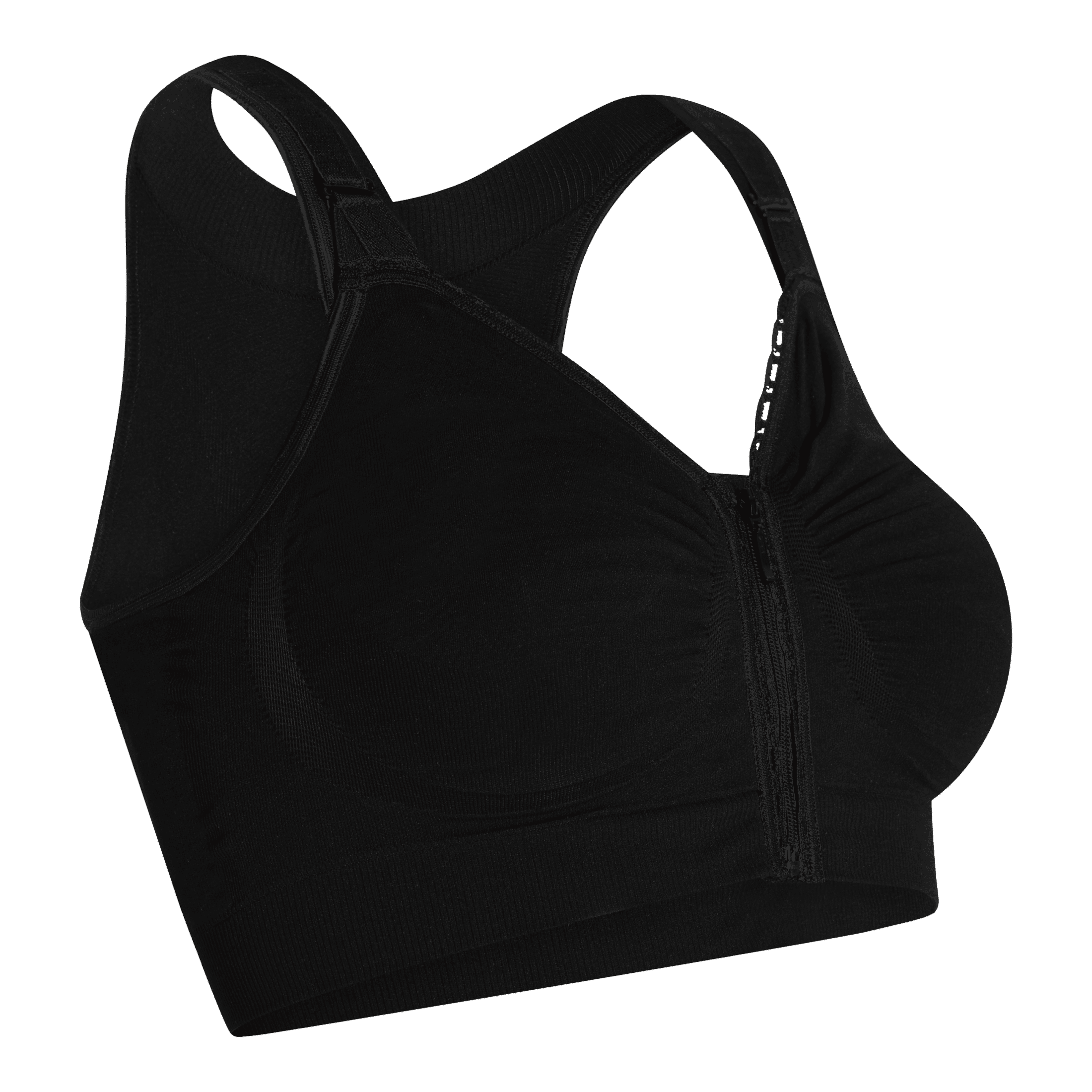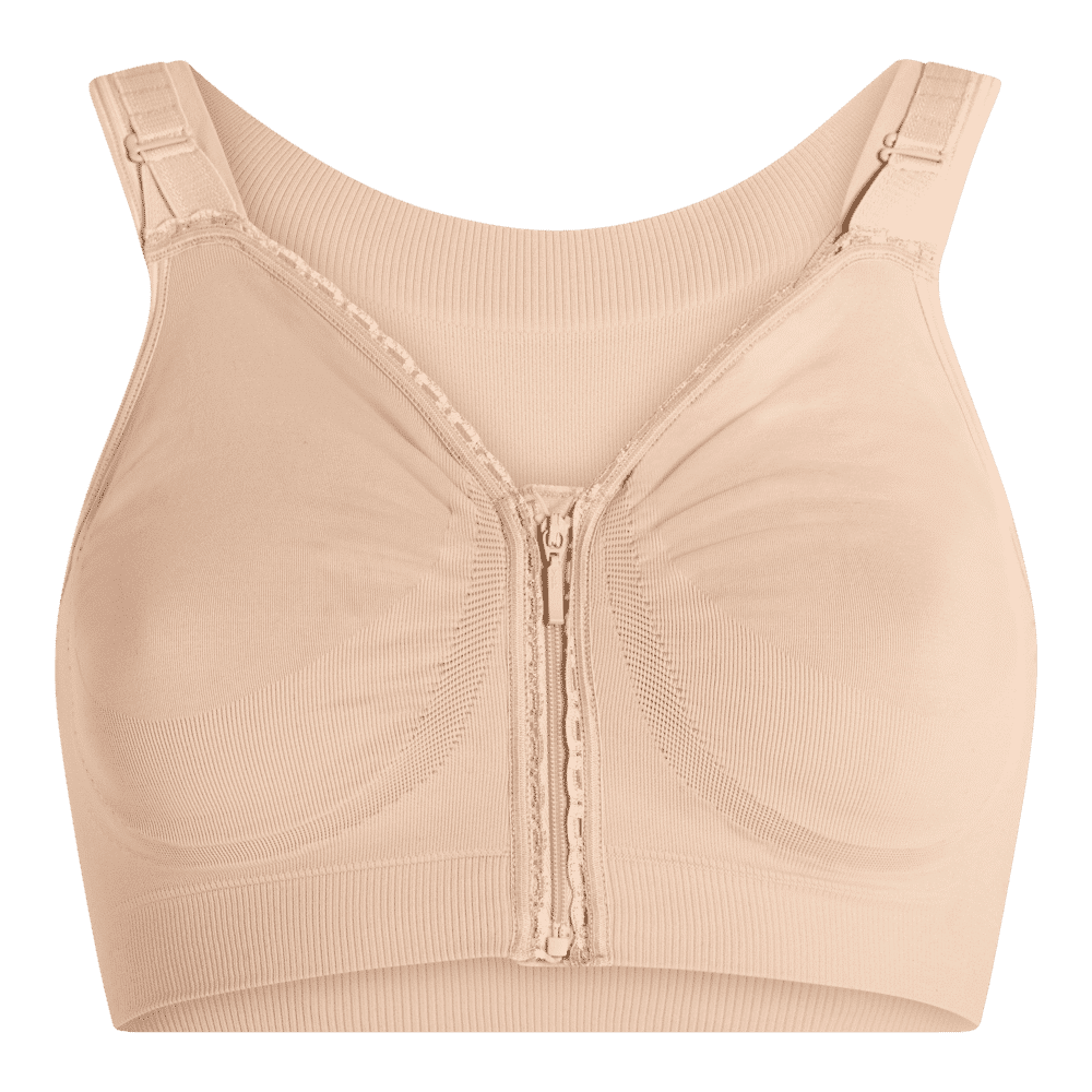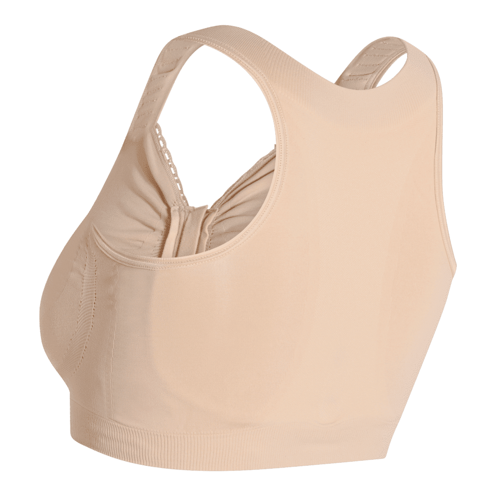 Sujetador compresivo Ava de Carefix. Ideal para cirugía de aumento de pecho y apto para mastopexias, reducción de pecho y reconstrucciones. Nivel de compresión 2 (firme), espalda alta y cierre delantero. Sin costuras, espalda alta para una mayor sujeción y corrección postural. Elaborado con materiales traspirables.