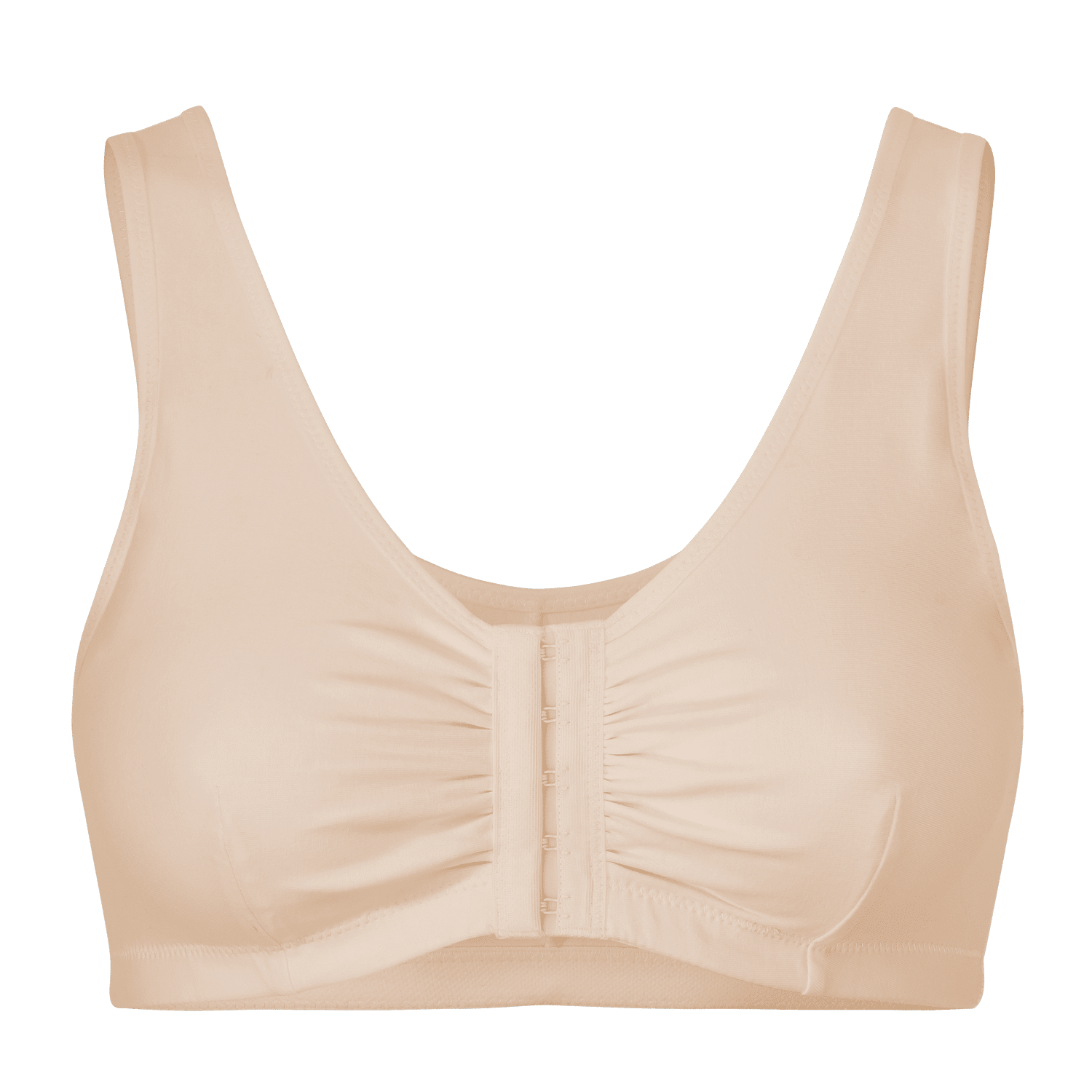 - El sujetador cuenta con un cierre frontal y tirantes anchos.